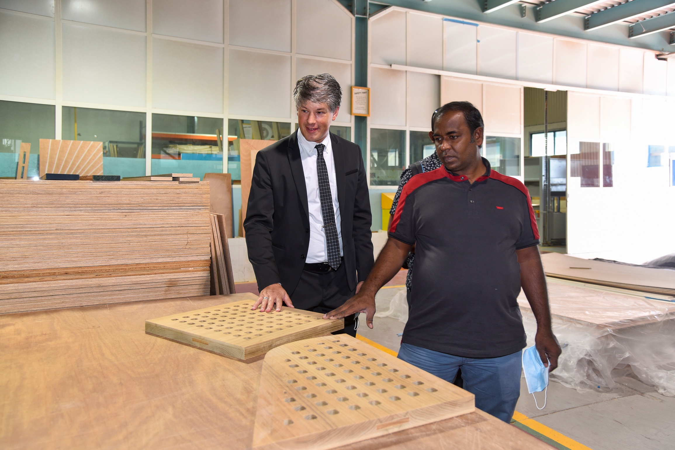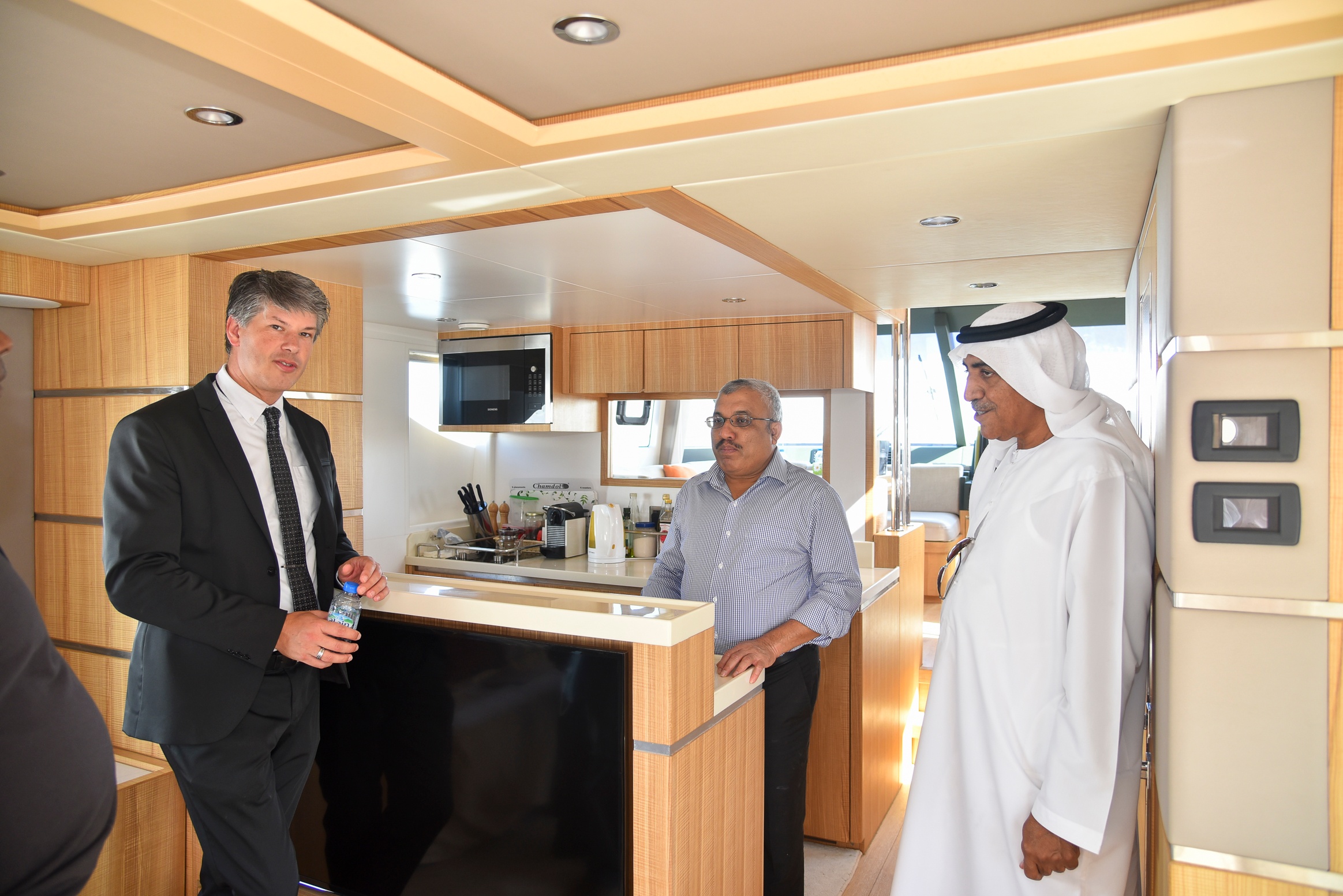 وكان في استقبال الضيف الكبير ومرافقه سعادة محمد الشعالي، رئيس مجلس إدارة جلف كرافت، بصحبة الرئيس التنفيذي للشركة إروين بامبس، اللذين رحّبا ترحيباً حاراً بالضيفين الكريمين في المنشأة البالغة مساحتها 675,000 قدم مربعة والواقعة في إمارة أم القيوين. واصطحب الشعالي الوفد الزائر في جولة حصرية بمنشأة الإنتاج حيث يتمّ بناء اليخوت التي تحمل العلامتين التجاريتين "ماجستي" و"نوماد".وكان في استقبال الضيف الكبير ومرافقه سعادة محمد الشعالي، رئيس مجلس إدارة جلف كرافت، بصحبة الرئيس التنفيذي للشركة إروين بامبس، اللذين رحّبا ترحيباً حاراً بالضيفين الكريمين في المنشأة البالغة مساحتها 675,000 قدم مربعة والواقعة في إمارة أم القيوين. واصطحب الشعالي الوفد الزائر في جولة حصرية بمنشأة الإنتاج حيث يتمّ بناء اليخوت التي تحمل العلامتين التجاريتين "ماجستي" و"نوماد".