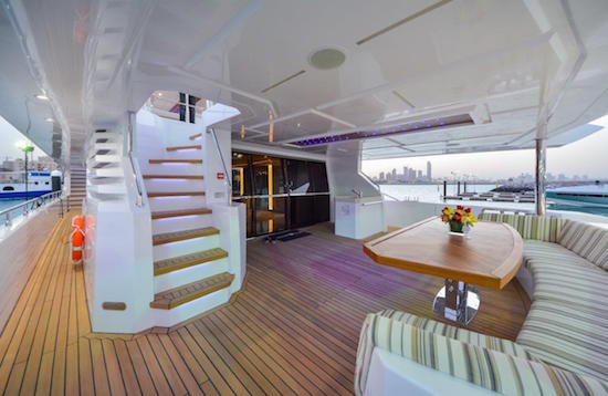 ويشتمل السطح الرئيسي لليخت على منطقة كبيرة ذات بيئة رسمية لتناول الطعام تستوعب ما يصل إلى 12 شخصاً.