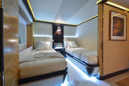 تقع غرف الضيوف الأربع على السطح السفلي لليخت، وهي عبارة عن مقصورتين مزدوجتين لكبار الضيوف ومقصورتين أخريين مزدوجتين. كذلك تقع غرف أفراد الطاقم على السطح السفلي عند المقدمة.