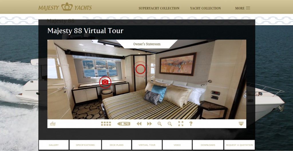 وكشفت جلف كرافت حديثاً عن أحدث جولاتها الافتراضية المصممة لليخت "ماجستي 88". انقر على Example 1 للبدء في الجولة التي تسمح لك بالاطلاع على اليخت بأكمله بزاوية 360 درجة.
