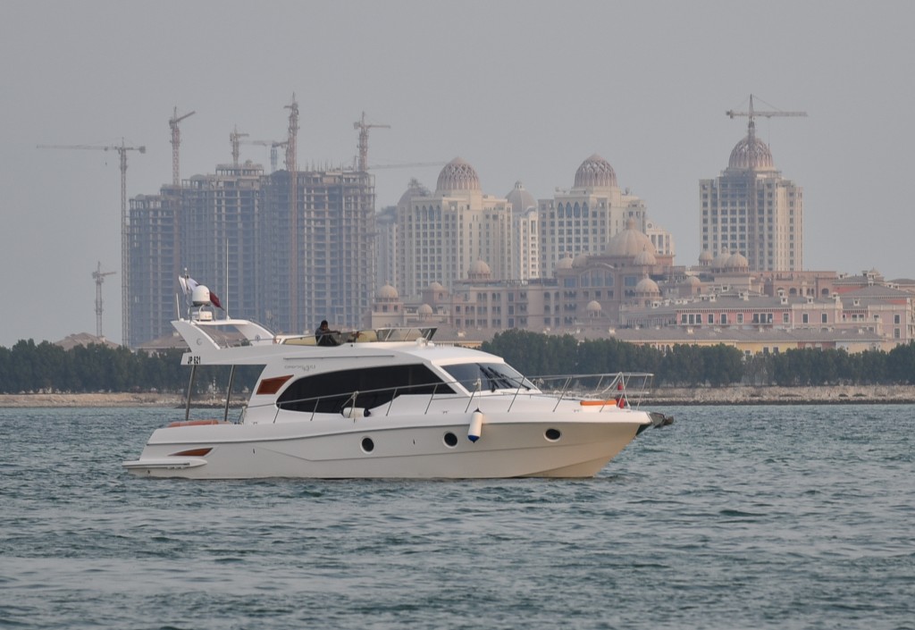 صورة للقارب أوريكس 43 فلاي خلال وصوله إلى مرسة مدينة لوسيل بالعاصمة القطرية الدوحة صورة للقارب أوريكس 43 فلاي خلال وصوله إلى مرسة مدينة لوسيل بالعاصمة القطرية الدوحة