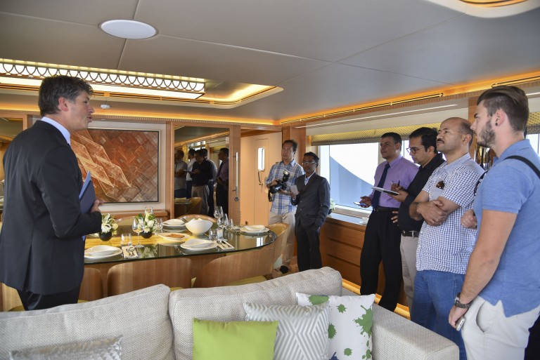 وقام إروين بامبس الرئيس التنفيذي للشركة بجولة خاصة على اليخوت والقوارب المعروضة برفقة عدد من ممثلي وسائل الإعلام في سلطنة عمان