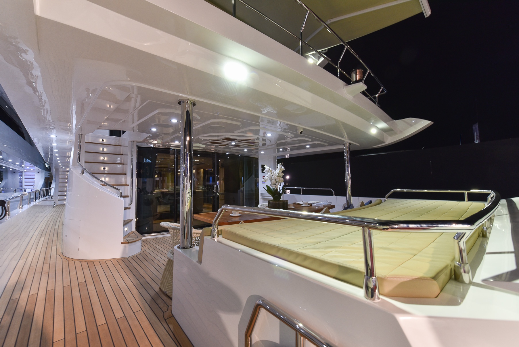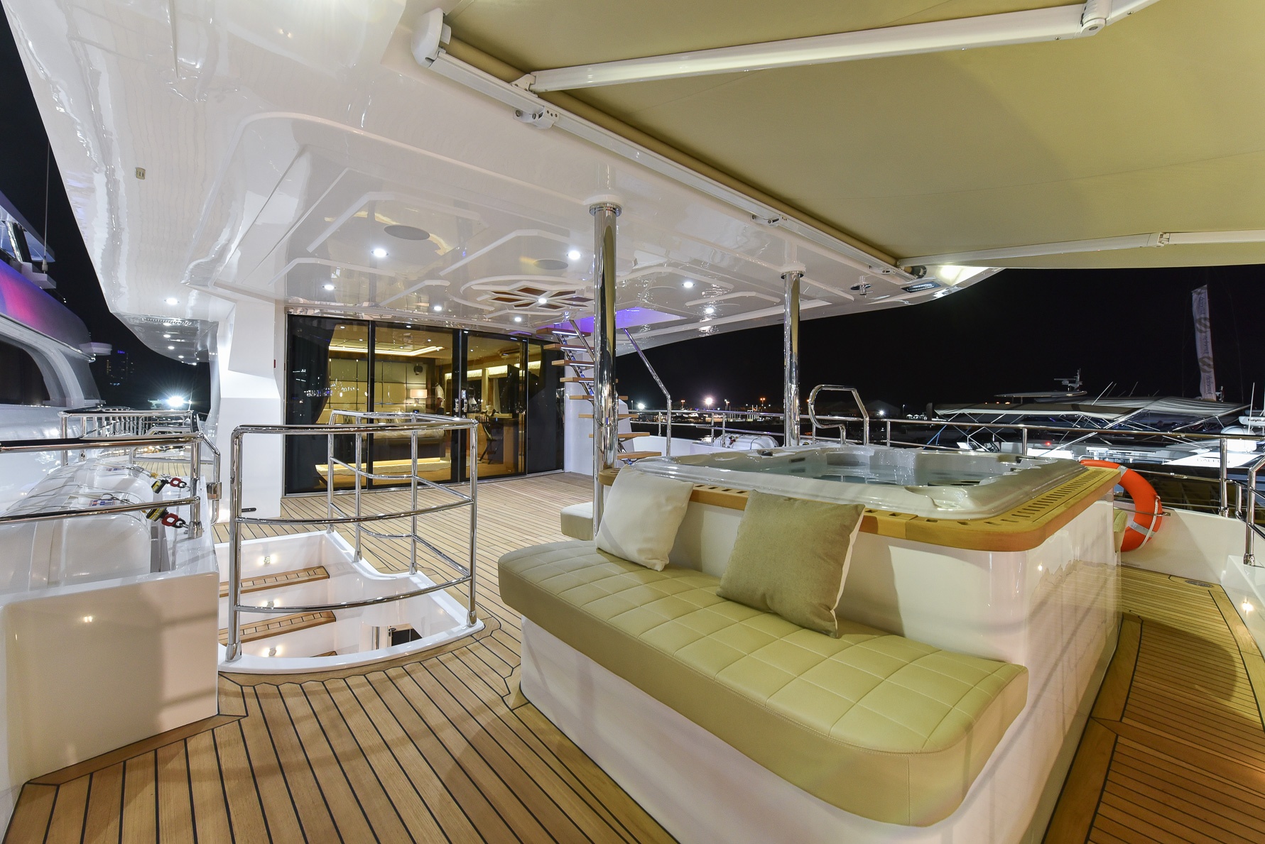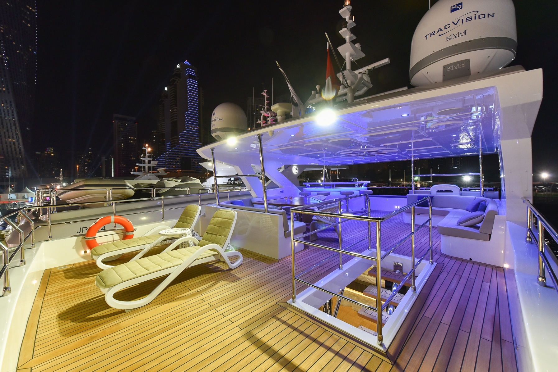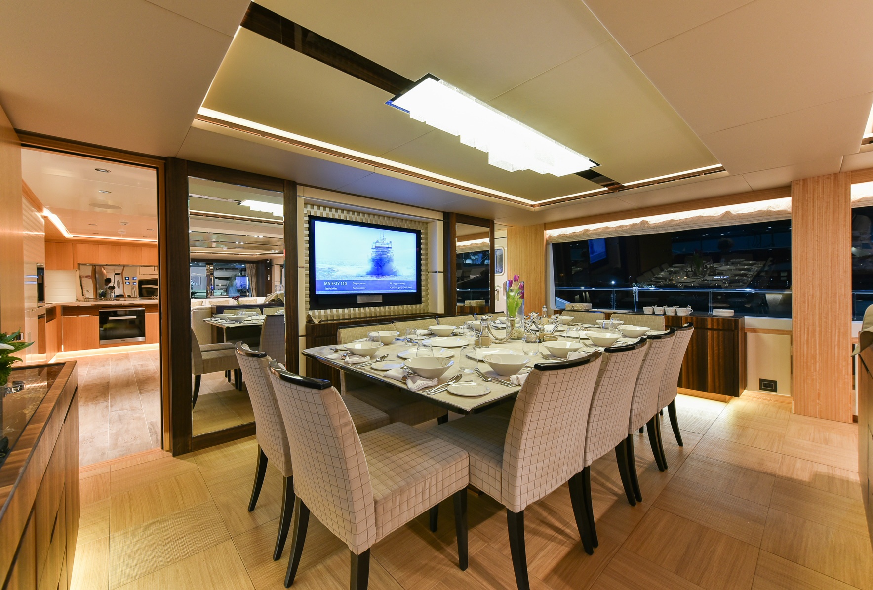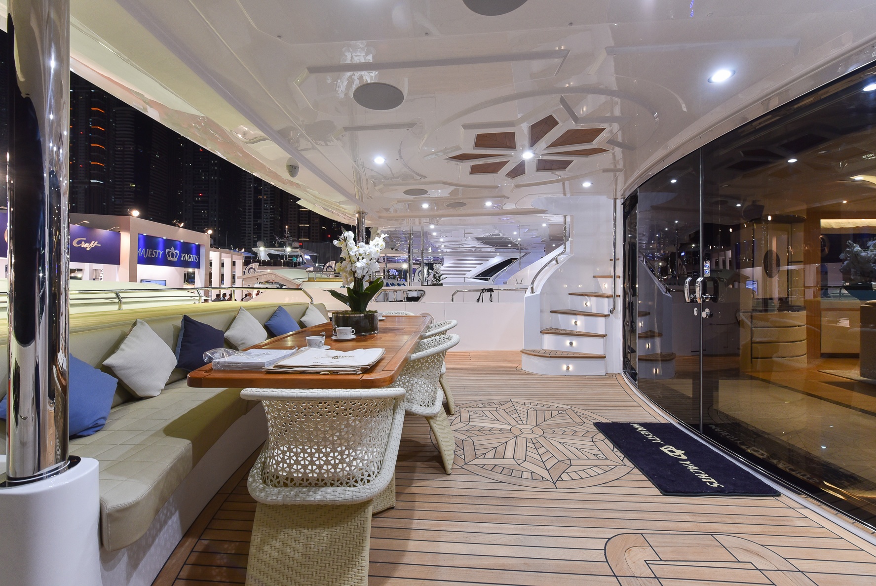 "يتمتع اليخت السوبر ماجستي 110، البالغ طوله 33 متراً، بمساحات داخلية رحبة، ويزخر في مساحاته الخارجية بالمواصفات الترفيهية والعديد من المرافق، حيث يكون بوسع ركاب اليخت ماجستي 110 الجلوس في منصة السباحة على السطح الخلفي، والاستمتاع بأشعة الشمس في حوض الجاكوزي على السطح العلوي، فضلاً عن التأمل في المناظر البحرية الساحرة من سطح التشمّس أثناء الاستماع إلى الموسيقى الآتية من نظام ""بانغ آند أولوفسين"" الصوتي الحديث. وقد تميزت جلف كرافت من خلال ابتكارها لليخت ماجستي 110 ليس فقط في التصميم الهندسي المتقن لليخت وإنما على اشتماله على أحدث التقنيات المميزة.