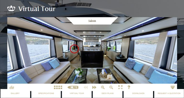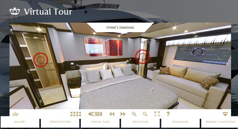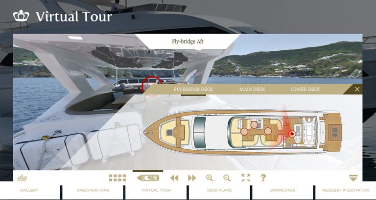 以下是权威90型游艇虚拟之旅模块的一些屏幕截屏。