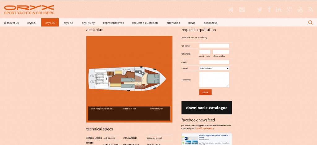 现在,您可以直接查看我们游艇的甲板图,轻松的寻求报价,从我们海湾游艇公司的脸书上获得最新的动态信息,下载电子版样本等等,还有更多。并且您可以通过访问我们的代理网页,找到在您区域内的当地分销商,同时您还可以通过我们海湾游艇博客的新闻页面获得更新内容。
