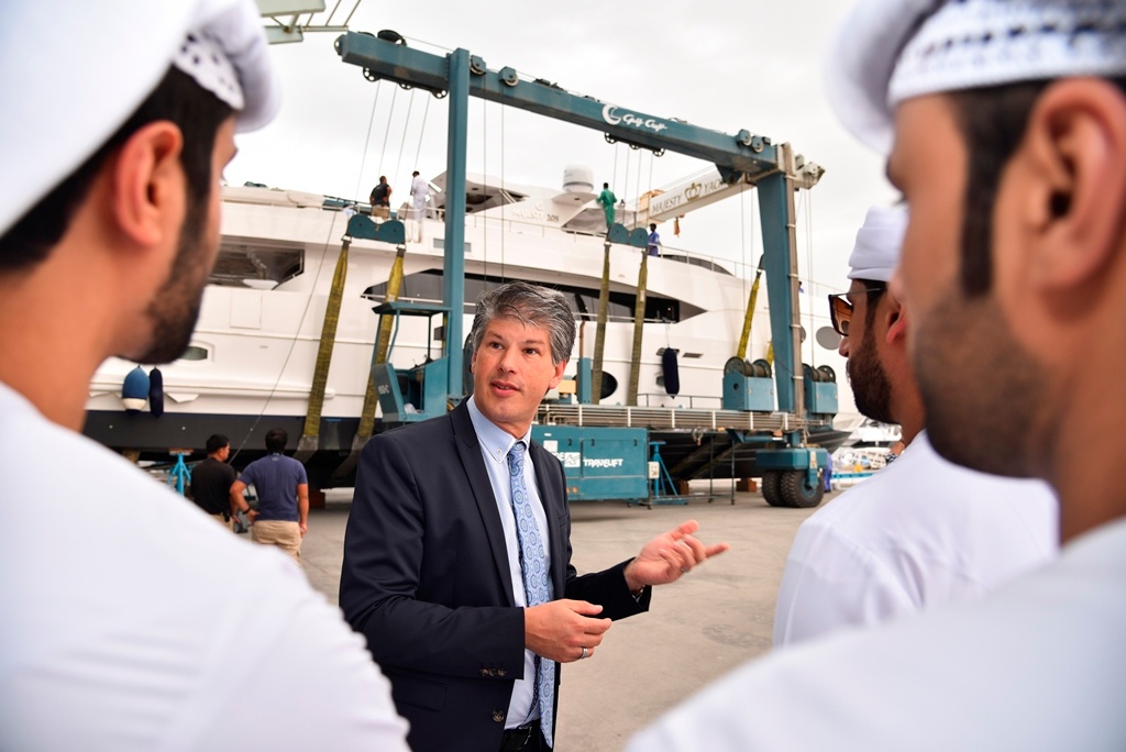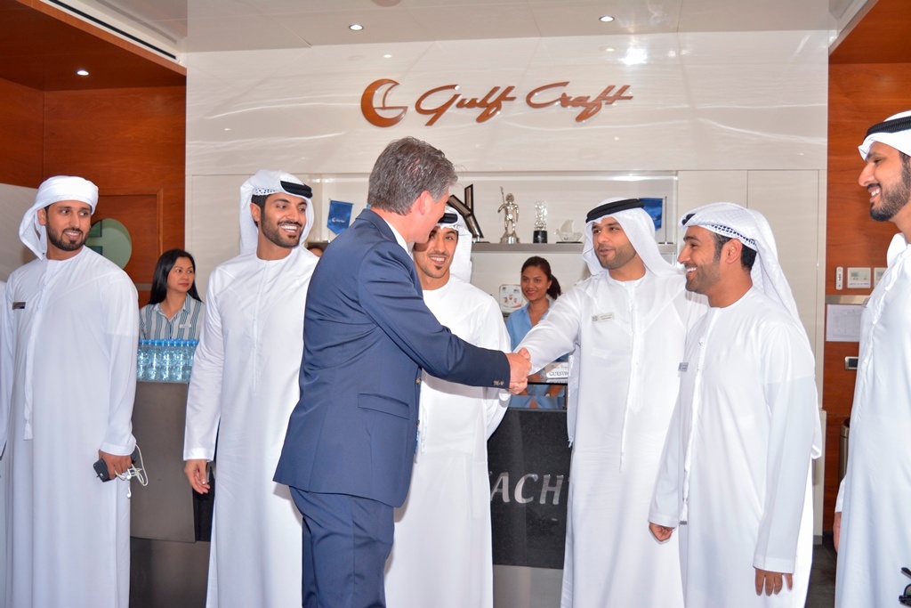 上周二,该计划的20名参与者及谢赫·阿卜杜勒阿齐兹·本·侯麦德·阿勒努埃米基金会代表来到了海湾游艇公司在乌姆盖万的船厂参观访问。海湾游艇公司首席执行官欧文·班普斯,高管阿比尔·阿沙阿里以及信息技术经理劳伦·福威尔欢迎了他们的到来。访客们在带领下参观了海湾游艇公司船厂,首次看到了如何建造一艘游艇。从原材料到全尺寸游艇,海湾游艇公司向他们展示了全面综合的能力,以及如何成为真正自豪的“阿联酋制造”。