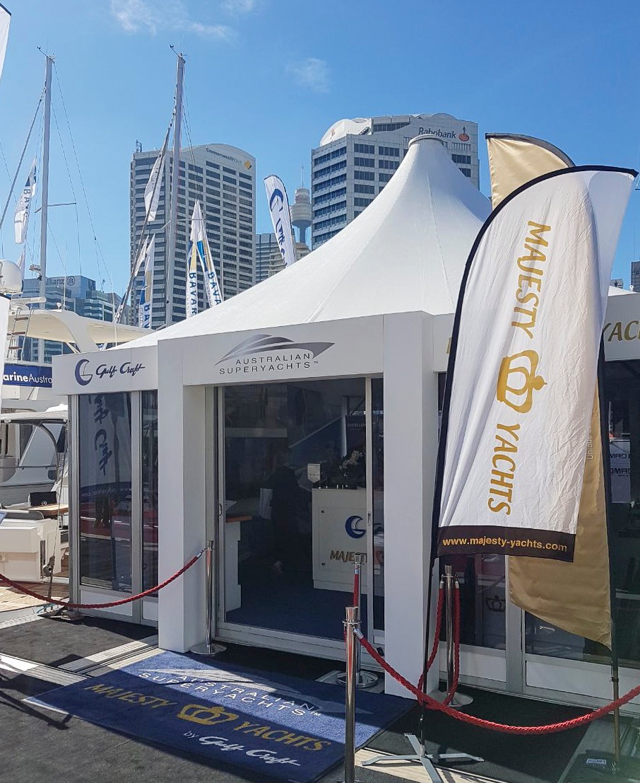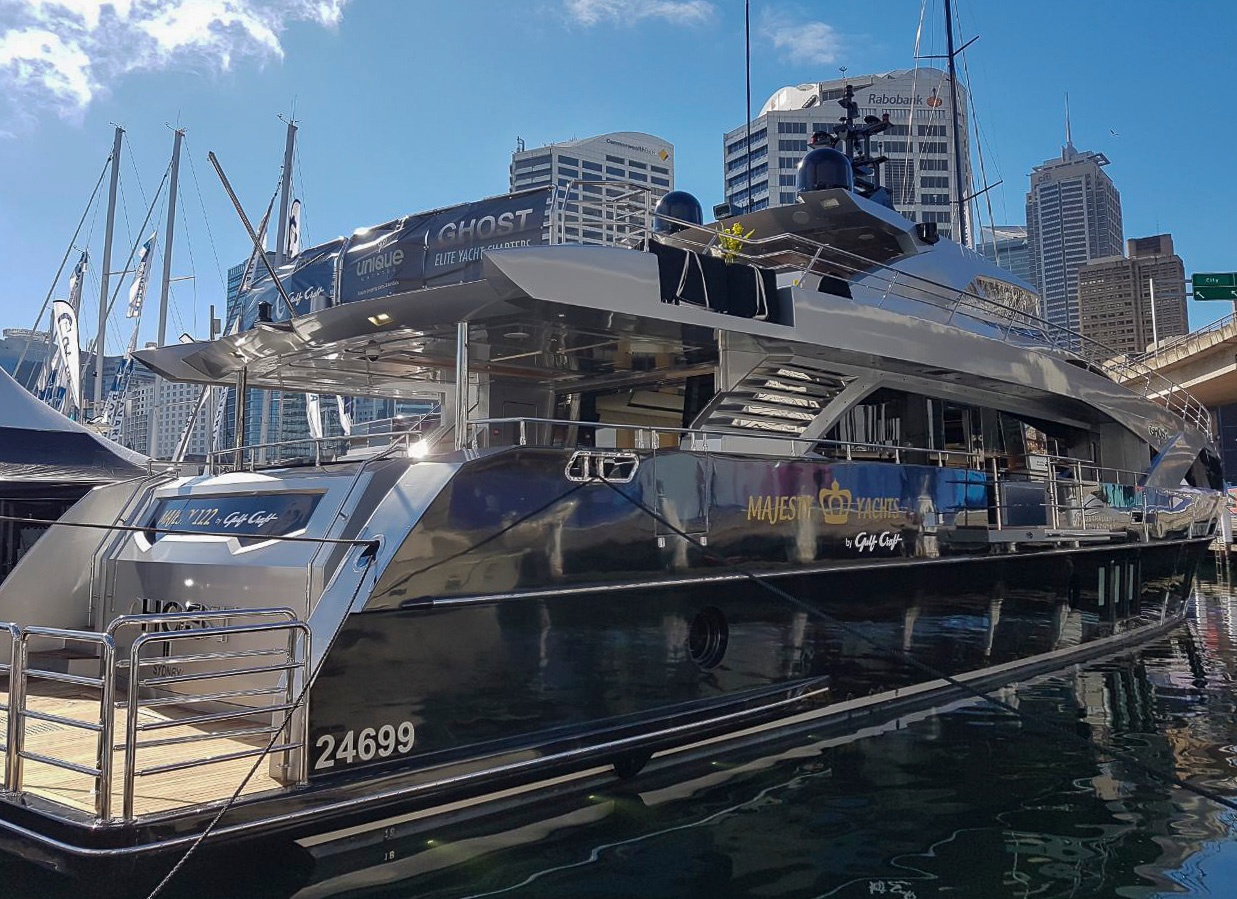 Несколько основных моментов в фото в день открытия международной выставки яхт в Сиднее, на которой Majesty 122 (M/Y Ghost II) компании Gulf Craft наслаждалась всеобщим вниманием, будучи самой крупной представленной суперъяхтой.