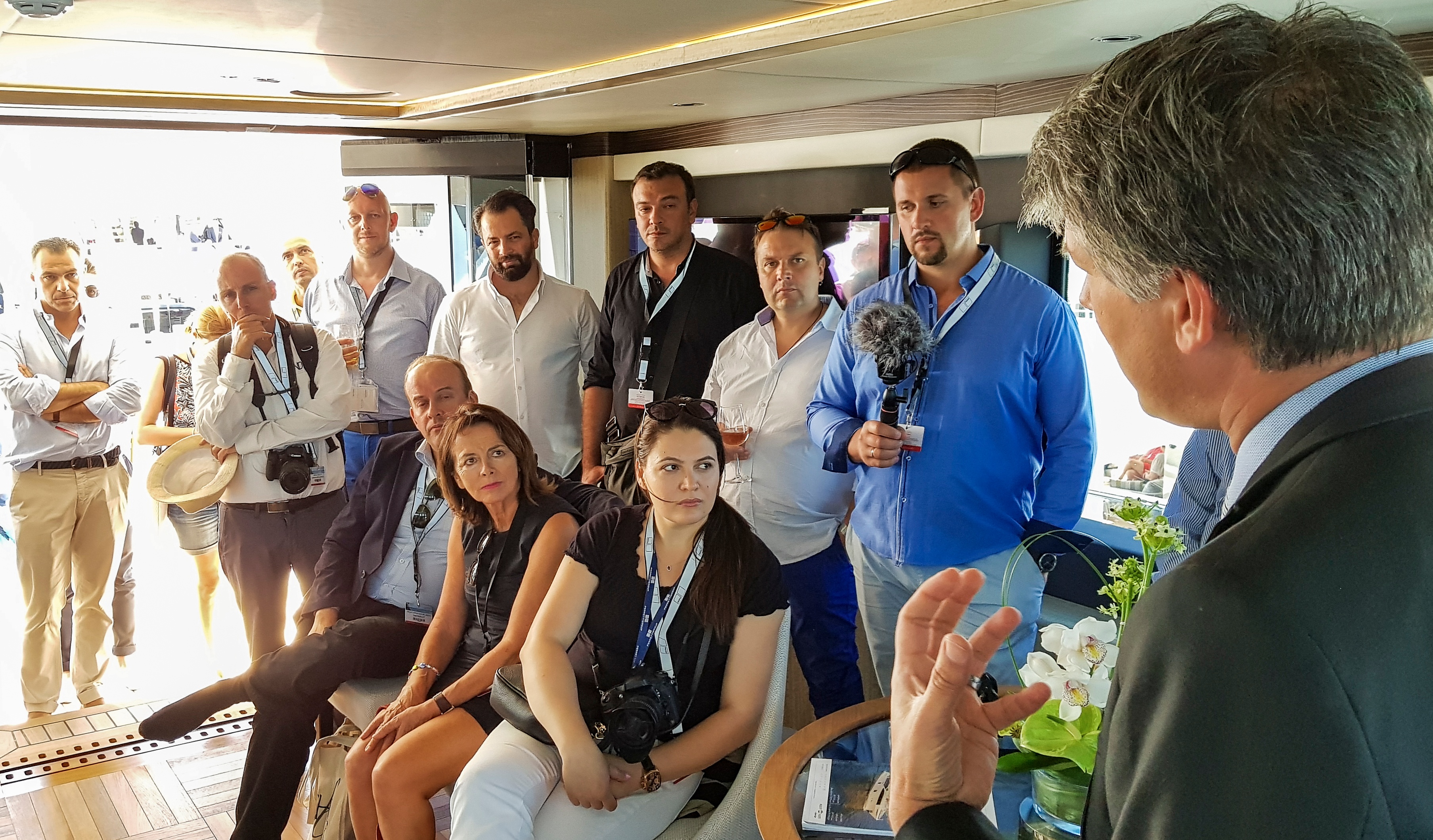 Компания Gulf Craft дала пресс-конференцию на скай-лаундже Majesty 100 в первый день фестиваля яхт в Каннах.