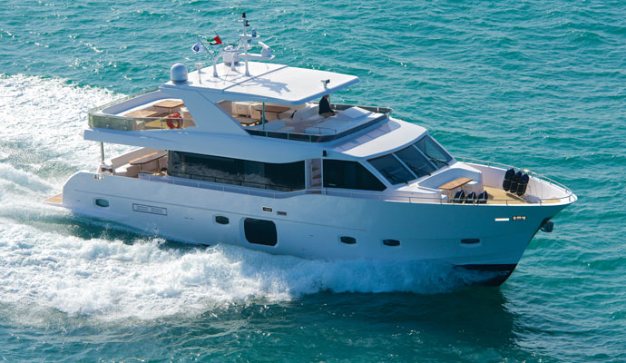 Отличительной чертой Nomad 75 является просторная флайбридж зона, которая расширяет корму над кабиной экипажа, еще больше расширяя просторный палубы и место для развлечений на борту.