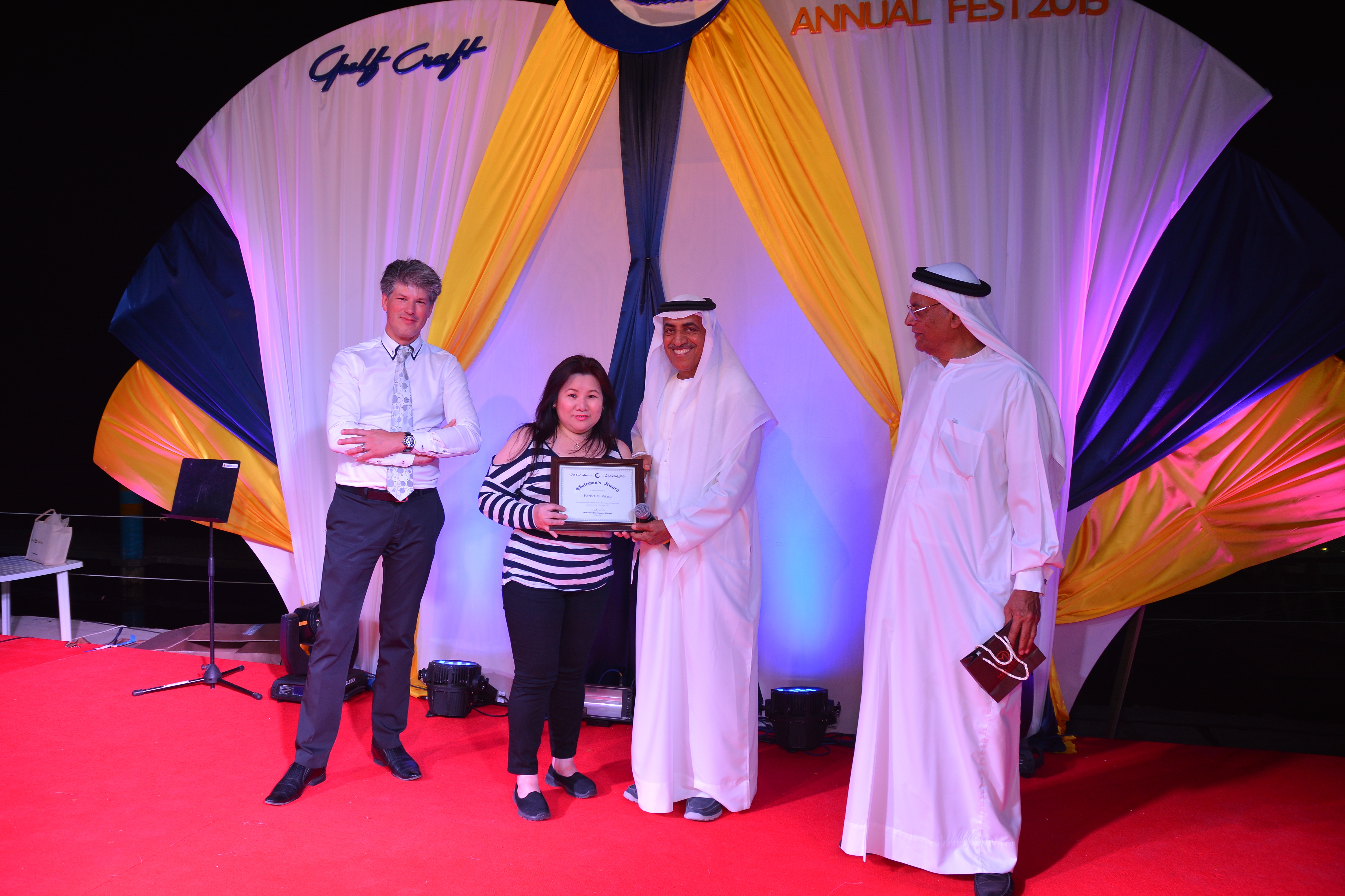 It was an impressive evening which started with a dance to the tune of "In the Navy" by some of Gulf Craft's management and production staff. Gulf Craft's employees also showed their talents in singing and dancing in "Gulf Craft's got talent" contest as well as some performances from the employees' children who grew up with the company. There was also intermission numbers from the Filipino Dancesport & Social Club which livened up the warm evening performing two local Philippine dances, Lanceros de Tayabas and Tinikling.