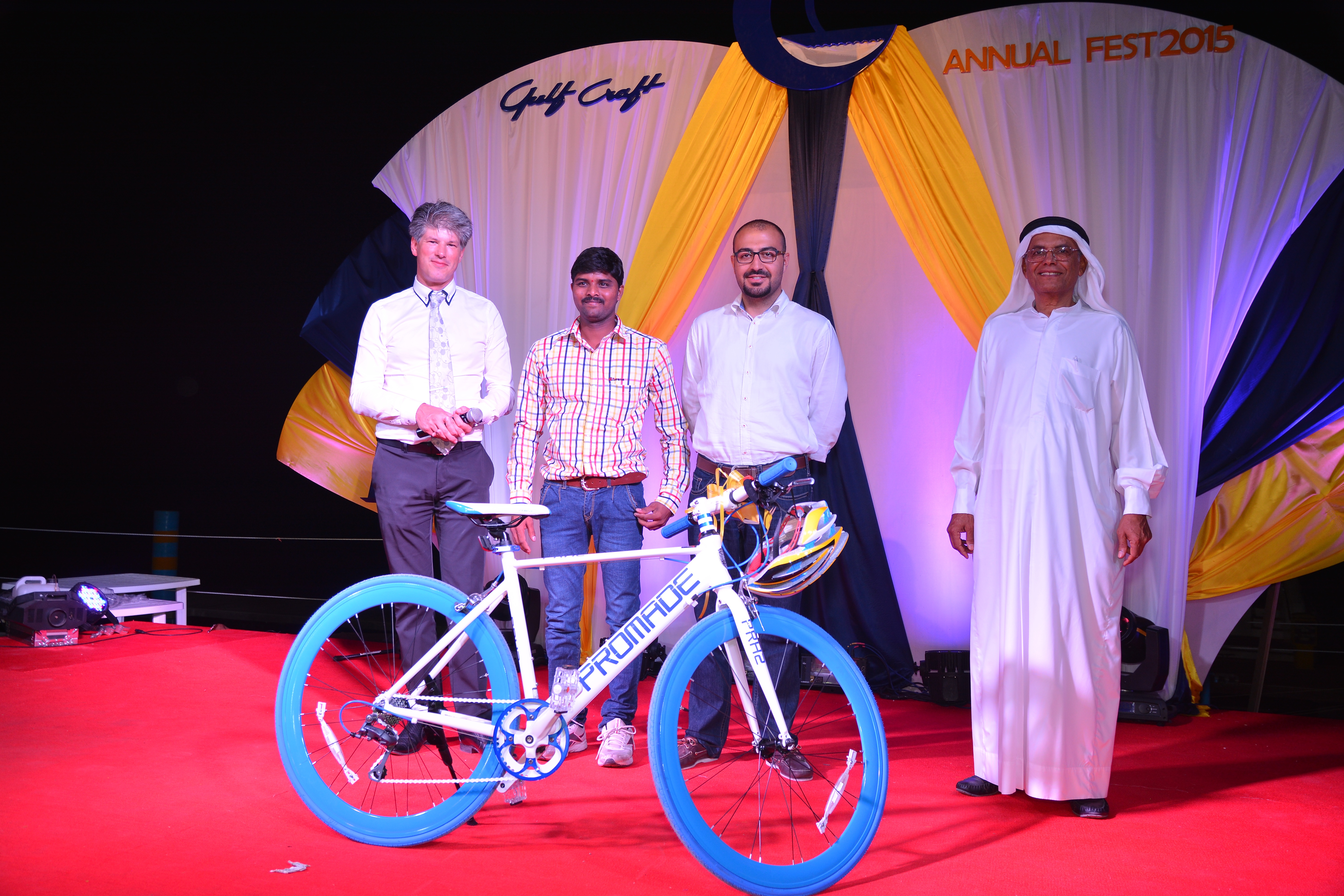 The festivities started off with the finals of the Gulf Craft Raft Race challenge. Four teams of 10 employees paddled their way at the shipyard's marina using their improvised boats made of wood, metal barrels and rope.